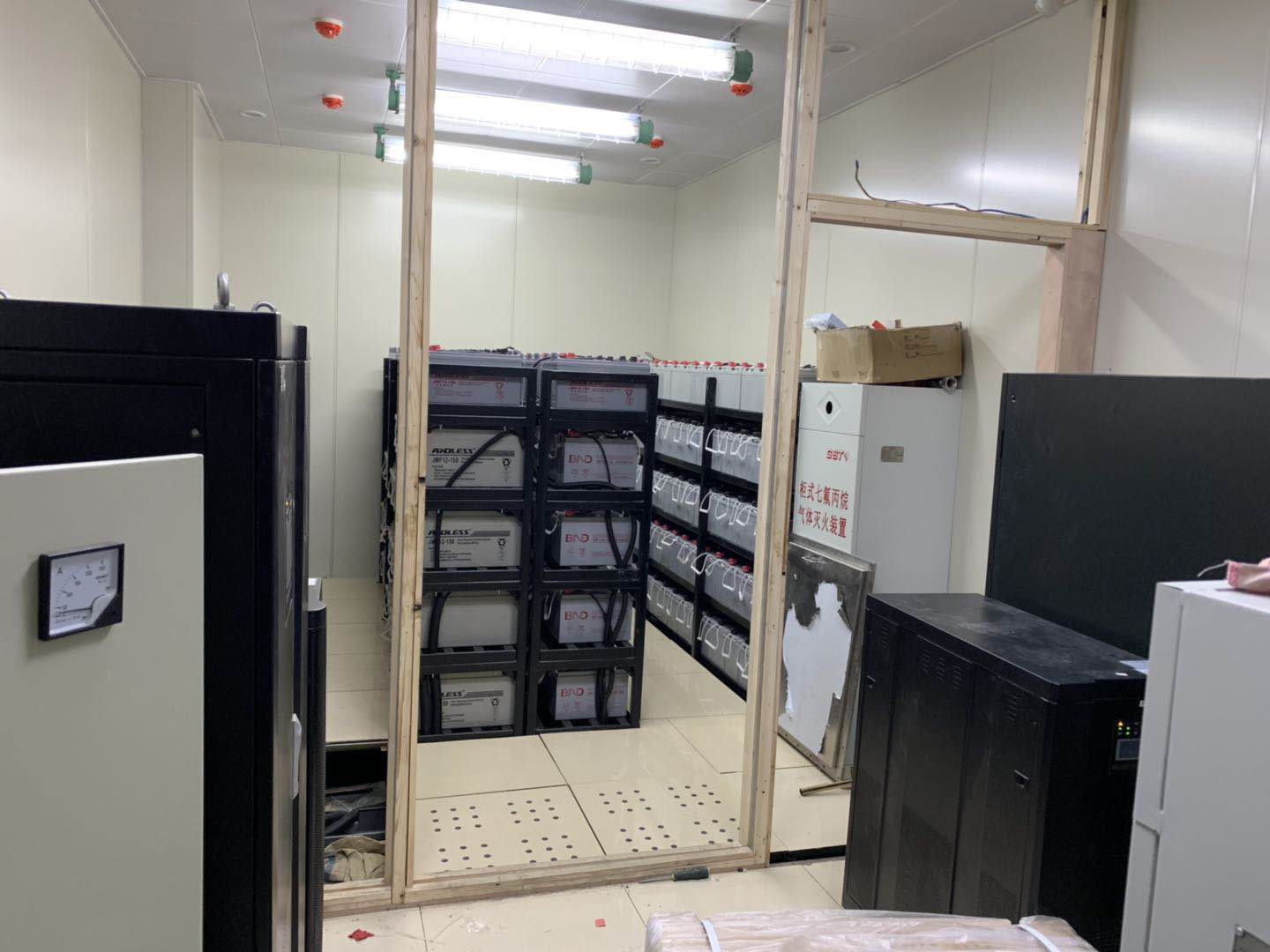 白湖監(jiān)獄安德力士模塊機180/60K 1臺,12V150AH 96只,電池架4個已安裝調(diào)試完畢,同時安裝了一批蓄電池12V100AH 48只,市電配電柜 1個,UPS輸出配電柜1個,電池配電防暴柜1個,并且已安裝調(diào)試完畢。UPS電源系統(tǒng)由五部分組成:主路、旁路、電池等電源輸入電路,進行AC/DC變換的整流器(REC),進行DC/AC變換的逆變器(INV),逆變和旁路輸出切換電路以及蓄能電池。其系統(tǒng)的穩(wěn)壓功能通常是由整流器完成的,整流器件采用可控硅或高頻開關(guān)整流器,本身具有可根據(jù)外電的變化控制輸出幅度的功能,從而當外電發(fā)生變化時(該變化應滿足系統(tǒng)要求),輸出幅度基本不變的整流電壓。凈化功能由儲能電池來完成,由于整流器對瞬時脈沖干擾不能消除,整流后的電壓仍存在干擾脈沖。儲能電池除可存儲直流直能的功能外,對整流器來說就像接了一只大容量電容器,其等效電容量的大小,與儲能電池容量大小成正比。由于電容兩端的電壓是不能突變的,即利用了電容器對脈沖的平滑特性消除了脈沖干擾,起到了凈化功能,也稱對干擾的屏蔽。頻率的穩(wěn)定則由變換器來完成,頻率穩(wěn)定度取決于變換器的振蕩頻率的穩(wěn)定程度。為方便UPS電源系統(tǒng)的日常操作與維護,設(shè)計了系統(tǒng)工作開關(guān),主機自檢故障后的自動旁路開關(guān),檢修旁路開關(guān)等開關(guān)控制。