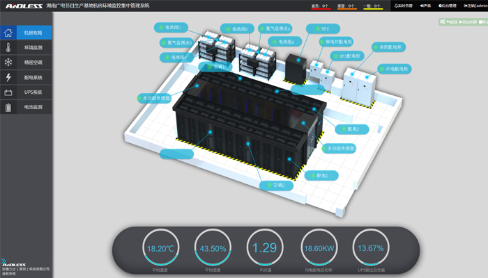 本次為湖南廣播電視臺節(jié)目生產(chǎn)基地冷通道機房配備并安裝調(diào)試安德力士品牌動力環(huán)境集中監(jiān)控系統(tǒng)一套,現(xiàn)已安裝、調(diào)試、培訓(xùn)完成。